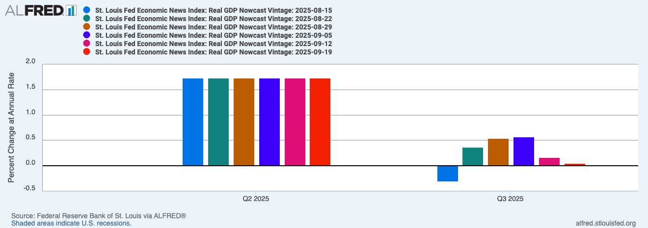 The ALFRED graph below shows the evolution of the ENI projection for real GDP growth in the third quarter of 2025 (through the latest vintage available as of publication).